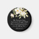 Magnet with Christian inspirational quote scripture depicts a beautiful watercolor floral with simple white flowers and greenery on a black background. It features a powerful Bible Verse from Ephesians 2:8, "By Grace you have been saved, through Faith, this is not from yourselves, it is the Gift of God"