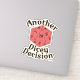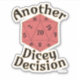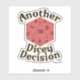 A fun another dicey decision board gaming slogan epic dice rolling dragon fantasy boardgamer tabletop game motto d-6 high roller funny boardgame humour first player hanging out with friends strategy or party game night design unique fun board gaming statement sticker decal. Get a fun board gamer attitude sticker today.