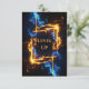 Announce your next major event, birthday, or tournament with an invitation that promises pure, adrenaline-fueled excitement. The border of this flat card features a spectacular, glowing rectangular frame forged from elemental magic. With intense blue flames on one side and roaring orange fire on the other, the high-contrast art absolutely leaps off the dark background.