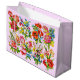 Flowers and flowers and FLOWERS. All kinds, all colours, all together on one marvellous print, which looks equally marvellous on all kinds of EVERYTHING, including gift bags. Note that the print appears on both sides of the bag, in mirror image. Note also that my shop has wrapping paper that matches this bag. Wanna see more old? Here's my blog! www.fullservicebohemian.blogspot.com