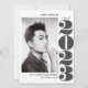 Elegant and modern graduation announcement cards design with graduate's best vertical (or portrait) photo and graduation year in oversized bold DARK GRAY lettering, with three custom line for name, college or school and year.