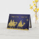 Featuring a beautiful traditional gold silhouette image of the Magi, the Three Wisemen as they travel on their camels following the star for find Jesus. Lovely card for the Feast of the Epiphany! January 6 is observed as a church festival in commemoration of the coming of the Magi as the first manifestation of Christ to the Gentiles. All text and fonts inside can be modified.