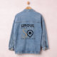 Elevate your style game with this custom women's denim jacket. Crafted from a comfortable cotton-blend, this jean jacket is the canvas for your personal fashion statement. The Epique Realty logo, proudly placed above the Santos Home Team logo, adds a touch of real estate finesse to your unique style. Whether you're at a property showing or a casual outing, this jacket showcases your individuality and passion for real estate. Make every outing a fashion statement with this personalised denim jacket.