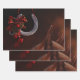 Wrapping paper sheets with a photo featuring a hanging horseshoe adorned with a buffalo plaid ribbon and Christmas decorations. The top of a horses head and ears also in view.