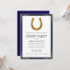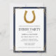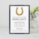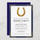 This invitation features an illustration of a race horse with a jockey and a striped background. All text elements are editable, so you can use this design for various events such as classy equestrian weddings, horse birthday parties, derby watch parties, horse barn openings, and more. You can also customize the background, illustration colors, and text colors using the design tool!