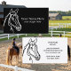 Equestrian horse company business card template. Custom visit cards design with farm animal logo. Elegant icon with modern typography for name and slogan. Black and white or custom colour background. Professional business cards for professions related to and jobs in the equine field. Also great for horse tours, cowboy ranches, stables, horse riding teacher, courses and more. Available in different sizes, paper thickness and round corner cut out shape. Change quantity to get the cheap bulk pack price. Black and white stallion drawing.