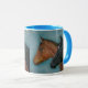 These two baby horses have the sweetest expressions The chestnut foal is a filly and the black foal is a colt. They have very short and fluffy manes that show their age, but their muscle and bone structure is definitely on the way to being a fully grown black stallion and a beautiful chestnut mare. The portrait of these two little fouls really stands out against the vibrant sky blue background of this original horse painting. The original portrait was painted in soft pastel and I think it looks stunning on this quality tea/coffee mug. It’ll be a wonderful gift for all horse lovers or maybe you just want to treat yourself to a unique and special art mug. If you're interested in commissioning a pet portrait for yourself or as a special gift for someone, please don't hesitate to email me for further details. I look forward to "chatting" to you:)
