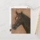 Gitana is the name of this beautiful chestnut mare. This amazing horse has a long flowing mane that's thick and lush. Her sweet and loving personality can been seen through her expressive eyes. This amazing deep brown horse was a pleasure to paint, but I especially enjoyed working on her wonderful mane. Sadly Gitana has passed on, she was a much loved family pet and she is a very special part of my equine portrait collection. This is a customisable postcard, you can personalise it with your own text. Gitana’s original pet portrait was painted in soft pastels. If you're interested in commissioning a pet portrait for yourself or as a special gift for someone, please don't hesitate to email me for further details. I look forward to "chatting" to you:)