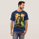 I give wanted to give this a 4 instead of a 5 because these Basic DARK T0shirts run unexpectedly SLIM or Narrow. Which is great if you do not have a potbelly, but I have a paunch. It isn't the shirt's fault that I've got a beer belly. The design and shirt itself is a quality cotton shirt. The color is more of a deep purple, but still a very pretty color. The Basic DARK T-shirts run a bit SLIMMER than the Basic Ts. The neck is a fraction narrower (or seems to be narrower) also. I'm a paunchy middle-aged woman and my neck is 12 inches (31cm) thick and the neckline fell about the same as in the photo of the man, and I had the desire to tug it a bit. So if you're a thick necked man or like loose shirts, be aware these are slimmer shirts. Once I get rid of my lockdown paunch it'll look great. The shirt washed well in cold water with no apparent bleeding. We don't have a dryer, so it hung dry. Did not shrink. Love the colors and the design. The design looks smaller on my shirt than it does on the model on-line. But still, it looks good on the shirt. The printing looks as it does on the model, just the size seems fractionally smaller. Washed garment in cold water, hung dry and design appeared unaffected.