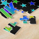 This lively and fun birthday-themed jigsaw puzzle design features the message "HAPPY BIRTHDAY, ERIK" with the characters having a colorful rainbow spectrum inspired gradient pattern, in addition to an exciting stars background pattern. An exciting puzzle like this might be a fun way to send a birthday greeting message to somebody named Erik. [~Z0000468]