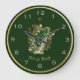 Green Irish harp shamrock wall clock with Celtic cross and shamrocks. Erin go Bragh (meaning Ireland Forever).
