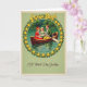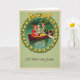 This card shows a vintage-style scene of a man, woman, and young girl riding together in a small wooden canoe on calm emerald water, their closeness reading like easy friendship with a gentle, caring glance shared between the adults 💚. The man wears a dark green jacket with sunny yellow trousers as he holds the paddle at the side, while the woman sits near him in a red dress and matching beret, turned slightly toward the child as if keeping her snug and safe. Between them, the girl in a green dress and white cap sits upright, her sweet expression framed by the soft light on the water. The whole picture sits inside an oval frame, surrounded by a garland of yellow flowers and curling green leaves that feels like early spring ☘️. Above the oval, the words “Eringo Bragh” appear in cheerful yellow lettering, and below it the smaller line “A St. Patrick’s Day Greeting” is placed neatly as a subtitle. The greens, reds, and yellows balance each other, and the water carries faint reflections of the canoe and figures. At the bottom of the oval, the emerald surface is lightly streaked with pale highlights that mirror the paddle’s path.