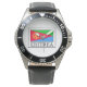 Watch, Stainless Steel Black Leather