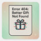 Error 404: Better Gift Not Found | Funny AI Square Sticker
