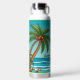 A captivating design showcasing a dreamy beach scene where swaying palm trees meet the rhythmic ocean waves. The lush tropical backdrop brings out the essence of a paradise escape, radiating calm, relaxation, and timeless island allure. "Original Image was generated by Meta AI. AI generated artwork. Licensed under CC BY-SA 4.0."