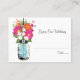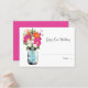 Perfect for a country style wedding or maybe you just love Mason Jars! Mason Jar hanging on a hook with Fuchsia Pink and Orange Gerber Daisies and white Wildflower Daisies. Fuchsia Pink on the back. If you have any questions on this design or want a colour change please email me paeam/Ivula@labellarue.com Also check for the MAIN INVITE, RECEPTION and RSVP Cards to match!