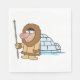 An eskimo dressed warmly standing by his igloo. This design looks really effective on these Paper Napkins