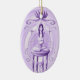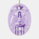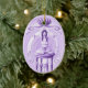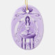 Esoteric, a surreal illustration featuring a woman meditating on top of a hour-glass. Original drawing made with pencils and Photoshop (purple tint) by artist "Luna" Siffert. Customisable.