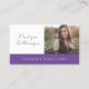 Modern Minimalist Metaphysical Esoteric Business Appointment Card in dark purple with photo template.