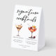 This sophisticated signature cocktails table tent sign features simple black typography above 2 of your favorite drinks and their ingredients for your coastal wedding bar. A chic Espresso Martini and Cherry French 75 drawing add a fun flair to your bar menu. Complete with the couple's names and date for their reception.