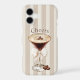 Let the good times roll with this feminine 2 tone beige stripes pattern with an espresso martini cocktail tied with a feminine ivory beige chiffon bow on the stem. The word "Cheers" is placed above the frothy drink and can be edited with other text if desired. For ladies who enjoy their social gatherings with friends and a good martini. Express your personality and fun with this unique phone case.