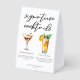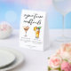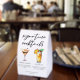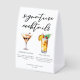 This chic signature cocktails list features simple black typography above 2 drinks and their ingredients for your wedding bar. An espresso martini and Pina Colada drawing add a cool flair to your bar menu table tent sign. Complete with the couple's names and date for their reception.