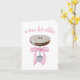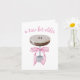 This greeting card features a watercolor portrait of an espresso martini with a pink ribbon bow tied around it's stem with the caption "a 'tini bit older".