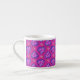 A pretty little Espresso Coffee Mug with a pattern of hearts and flowers in shades of magenta, pink, purple and blue.