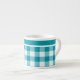 Stylish Espresso Coffee Mug, with a Teal and White Check Gingham Pattern.
