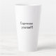 Here's a gift idea for all hot drink lovers. A mug featuring the words "Espresso yourself!" to inspire and motivate them with their morning coffee. Simple black typography on white.