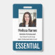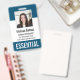 Identify essential personnel, employees, and workers with these custom photo template badges. Personalise these vertical badges with an employee photo and name, along with multiple custom text fields for title or role, company name, employee ID number, or valid through date. "ESSENTIAL" or your desired text appears along the bottom in bold white lettering for easy identification. Customise with a barcode on the back if needed, along with return information or other details.