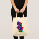 The printing came out very well, better than I had anticipated. The natural color fabric is sturdy with strong seams and comfortable handles. This tote fits easily over my shoulder. As it is filled, the bottom flattens out--very cool! I would buy this product again. This grocery tote holds a lot of groceries! The image quality was very good. The colors were a little darker than I had expected. The darkness may have been due to printing on a natural color fabric rather than on white. The cat design is attractively centered on the tote. The spirit of the design is very lively, just as it appears on the Zazzle website.
