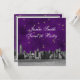 NYC Etched Black & White Skyline View, Purple Background Gold & White Stars Collection - Sweet Sixteen Party Invitation