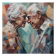This geometric piece depicts an elderly couple in a tender moment, with colourful triangles in soft and vibrant tones. The interwoven shapes symbolise a lasting union, while the blended colours reflect the depth of their emotions and the beauty of a shared life.