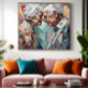 This geometric piece depicts an elderly couple in a tender moment, with colourful triangles in soft and vibrant tones. The interwoven shapes symbolise a lasting union, while the blended colours reflect the depth of their emotions and the beauty of a shared life.