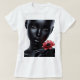 This captivating digital artwork features a futuristic figure with a flawless, metallic black complexion, holding a vibrant red flower delicately between their fingers. The subject's expressive, deep amber eyes gaze forward with a sense of quiet intensity, creating a striking contrast against the dark, minimalistic background. Subtle reflections on their smooth, sculpted face hint at advanced technological elements, blending organic beauty with synthetic elegance. The red flower, with its vivid colour and soft petals, adds a touch of warmth and humanity to the otherwise sleek, almost otherworldly figure. This piece explores themes of beauty, duality, and the intersection of nature with artificial intelligence.
