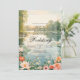 A tranquil and romantic scene unfolds by a sun-drenched lakeside, with soft floral blooms adorning the foreground. This design evokes a serene and painterly atmosphere, perfect for a dreamy occasion.
