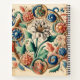 The product depicts a beautifully intricate and decorative floral design that combines elements of mediaeval and Renaissance-style botanical illustrations. The composition features an array of colourful flowers, including a central white flower with detailed petals, surrounded by circular patterns containing blue, red, and pink blossoms. These flowers are intertwined with swirling vines and leaves in vibrant greens, blues, and earthy tones, giving the design a dynamic and harmonious appearance. The design showcases an artistic style reminiscent of illuminated manuscripts or ornate filigree, with an elegant vintage aesthetic. The background is softly textured, enhancing the traditional feel of the artwork. The details, such as small butterflies and delicate curls, add to the whimsical and enchanting quality of the piece.