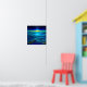 Beautiful blue frothy waves with yellow sunset and stars in the night sky.