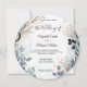 The design features a soft, ethereal arrangement of powder-blue and muted earthy tones with delicate foliage, berries, and florals encircling the edges. The frame is predominantly decorated with watercolor-style leaves, cotton flowers, and dark berries, giving it a rustic yet elegant feel. The central area is left blank, ideal for text or event details, surrounded by organic shapes that evoke a serene, autumnal mood. This sophisticated, nature-inspired motif would work beautifully for a wedding collection with a romantic, timeless atmosphere.