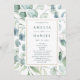 This wedding ceremony program features painted watercolor eucalyptus and botanical green leaves with a gold rectangle frame. For more advanced customisation of this design, please click Customise Further link to change font, size, and colour.