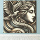This stunning artwork features an ethereal goddess with flowing hair intertwined with a gracefully soaring dove, all depicted in an intricate engraved woodcut style. The harmonious composition blends classic linework with modern aesthetics, creating a timeless and elegant design. Perfect for those who appreciate mythology, spiritual symbolism, and artistic craftsmanship. Ideal for prints, home decor, apparel, and gifts for lovers of fantasy and nature-inspired art.
