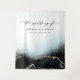 Ethereal Mist Ombre Navy Blue Watercolor Moody Wedding Design with hand painted watercolor misty wash fading background texture, gold foil look veining lines, and trails of confetti dots and edges. A trendy and Modern Look for any season, with soft dreamy colour palette : Black, Navy, Dusty Blue, White, and gold, with a chic popular brush Script lettering Font - Personalised Wedding Photo Book Photography Background Backdrop prop sign!