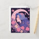 This enchanting illustration features a serene woman with flowing hair, surrounded by blooming flowers and a crescent moon adorned with stars. The dreamy pastel colours and mystical atmosphere make it a perfect piece for those who love celestial and spiritual art.