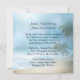 Pretty beach theme custom wedding invitation. Lovely graphics of a sandy beach scene, with two palm trees, and a lovely blue and ethereal looking water and sky background, over the rest of the invitation. The back is done with the water and sky graphics. Text in black is fully customisable to personalise for your special day. Great for beach destination weddings.