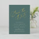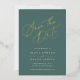 Elegant wedding save the date cards in soft moss green feature "save the date" in luxe rose gold foil script lettering at the top. Personalize with your wedding details in classic soft white lettering.
