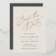 Elegant wedding save the date cards in soft cream feature "save the date" in luxe rose gold foil script lettering at the top. Personalise with your wedding details in classic charcoal lettering.