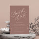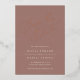 Elegant wedding save the date cards in earth toned spiced clay feature "save the date" in luxe rose gold foil script lettering at the top. Personalise with your wedding details in classic soft white lettering.
