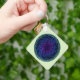 The design features a mesmerising central swirl that draws the eye inward, combining deep purples, vibrant blues, and green tones for a rich, dynamic look. Finely detailed lines and textures add depth and complexity, evoking a sense of mystery and otherworldliness. The natural, fluid pattern and the contrast between the dark swirl and muted border enhance visual impact. Symmetrical balance and subtle textural elements add harmony and tactile interest.