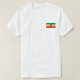 The front of this t-shirt bears a small Ethiopian flag with its familiar yellow motif within blue circle over green, yellow and red bands, while the back displays a relief map of Ethiopia. Available on t-shirts, sweatshirts, polos, long-sleeves and more.